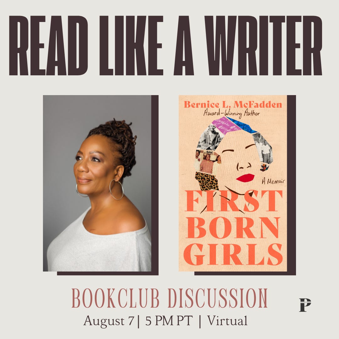 Join us on Thursday, August 7th, 5pm PT/8pm ET for a candid conversation with celebrated author Bernice L. McFadden as we explore the literary artistry behind First Born Daughters. This conversation explores McFadden’s creative choices, highlighting the narrative structure, stylistic precision, and cultural depth that define this unforgettable memoir.