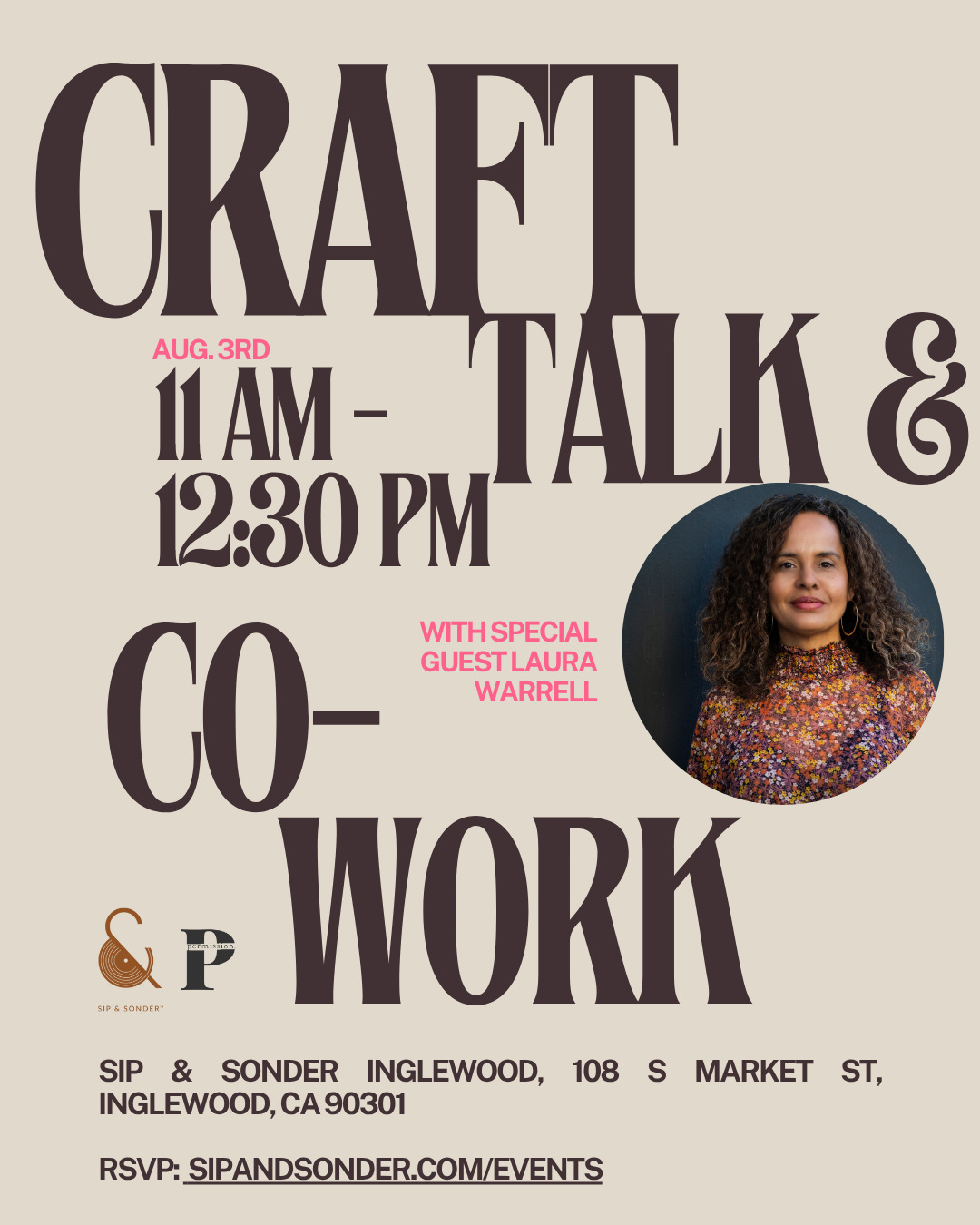Are you in the LA area? Join us for the next session of our Craft Talk & Co-Work series featuring author of SWEET, SOFT, PLENTY RHYTHM Laura Warrell on August 3rd. She will walk us through revision strategy before we jump into dedicated co-working time. Bring at least one written page for the planned exercise.